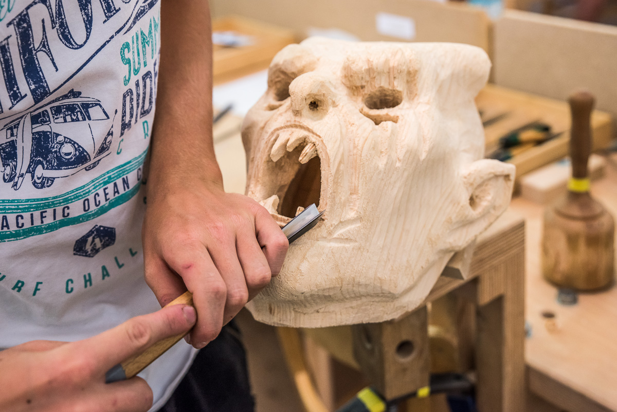 In diesem 2½-tägigen Kurs schnitzen die Jungschnitzer ihre erste Krampusmaske.